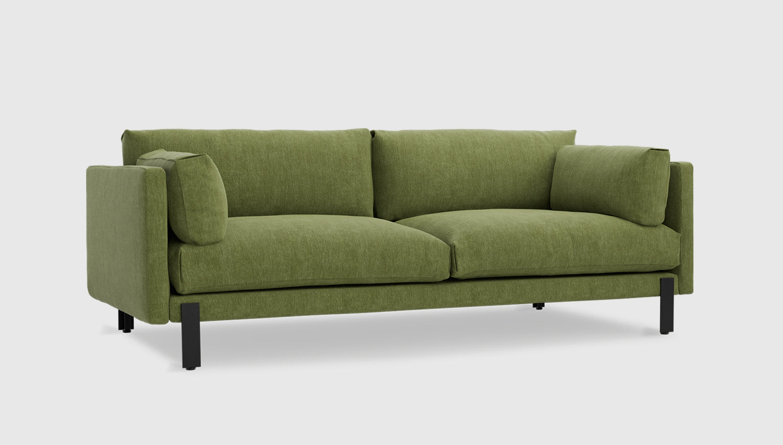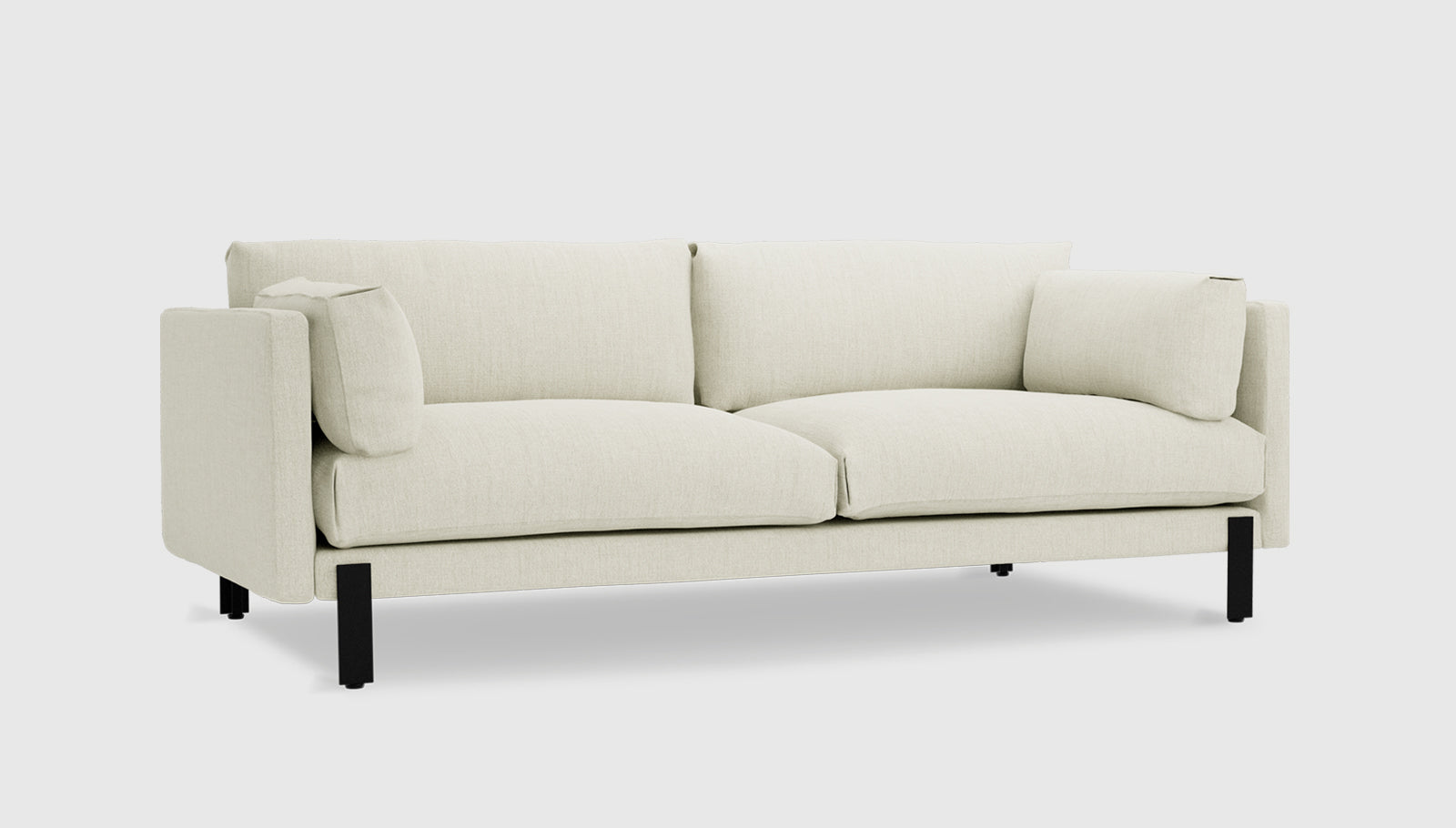 The Silverlake Upholstery Collection is a Scandinavian-inspired seating design that strikes an elegant balance between minimalist styling and a casual, inviting feel. The design features a slender tuxedo frame, and plush seat and back cushions filled with our eco-friendly, signature PET fill. The back and side cushions can be adjusted to your preferred angle, while the generous seat depth enhances the sofa's or sectional's comfort. Subtle features like pleated fabric details on cushion corners and architectural, black powder-coated steel legs complete Silverlake, laid-back modern aesthetic. The collection is a restful haven for any busy home, office or lobby. The frames are constructed with kiln-dried FSC®-Certified hardwood in support of responsible forest management. Silverlake uses a clean, ultra soft, long-strand fiber fill material that offers the comfort and feel of traditional waterfowl down. This material is created through a process that benefits the environment by diverting 709 plastic bottles away from landfills, waterways and oceans for each Silverlake Sectional we build.