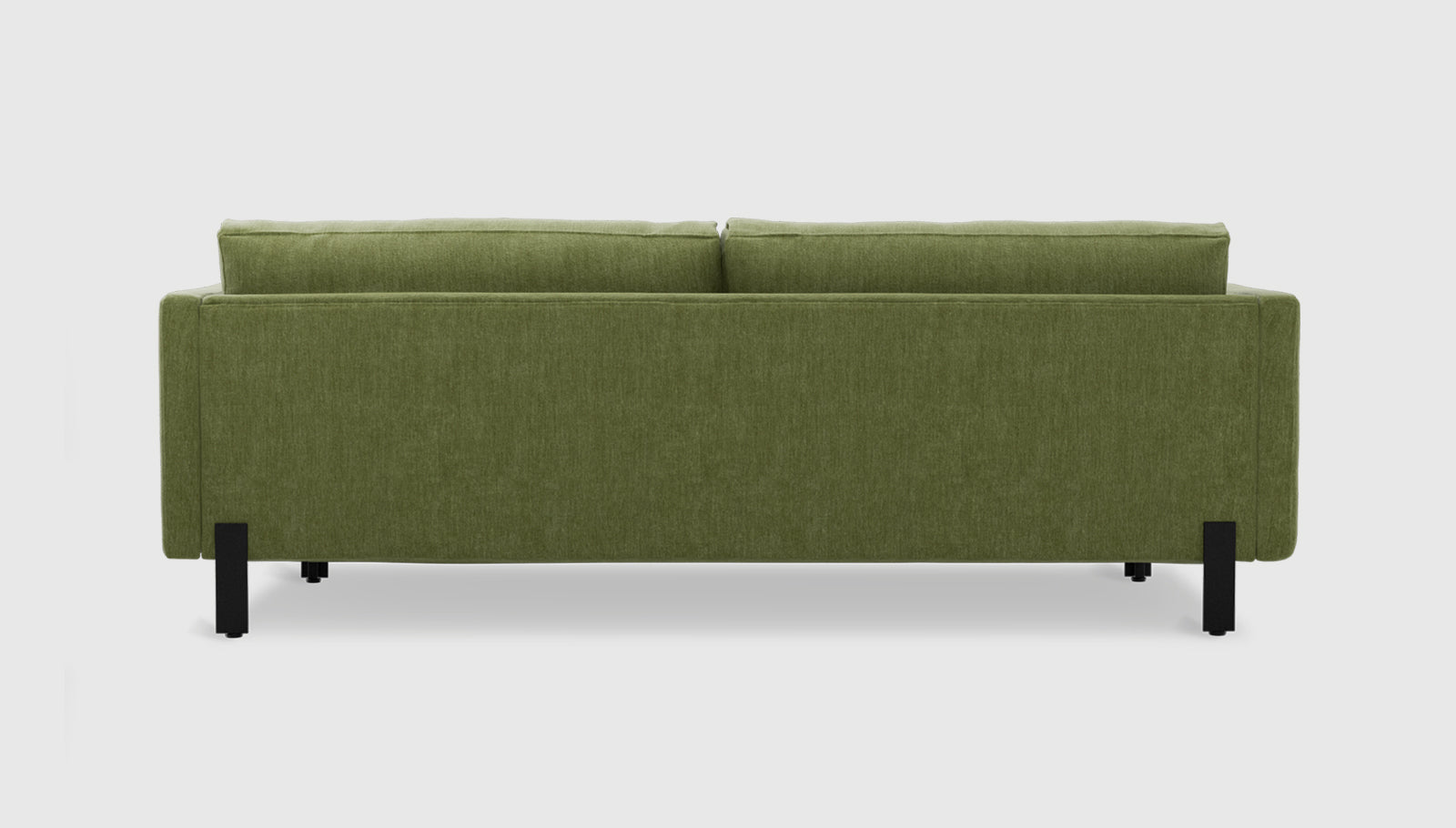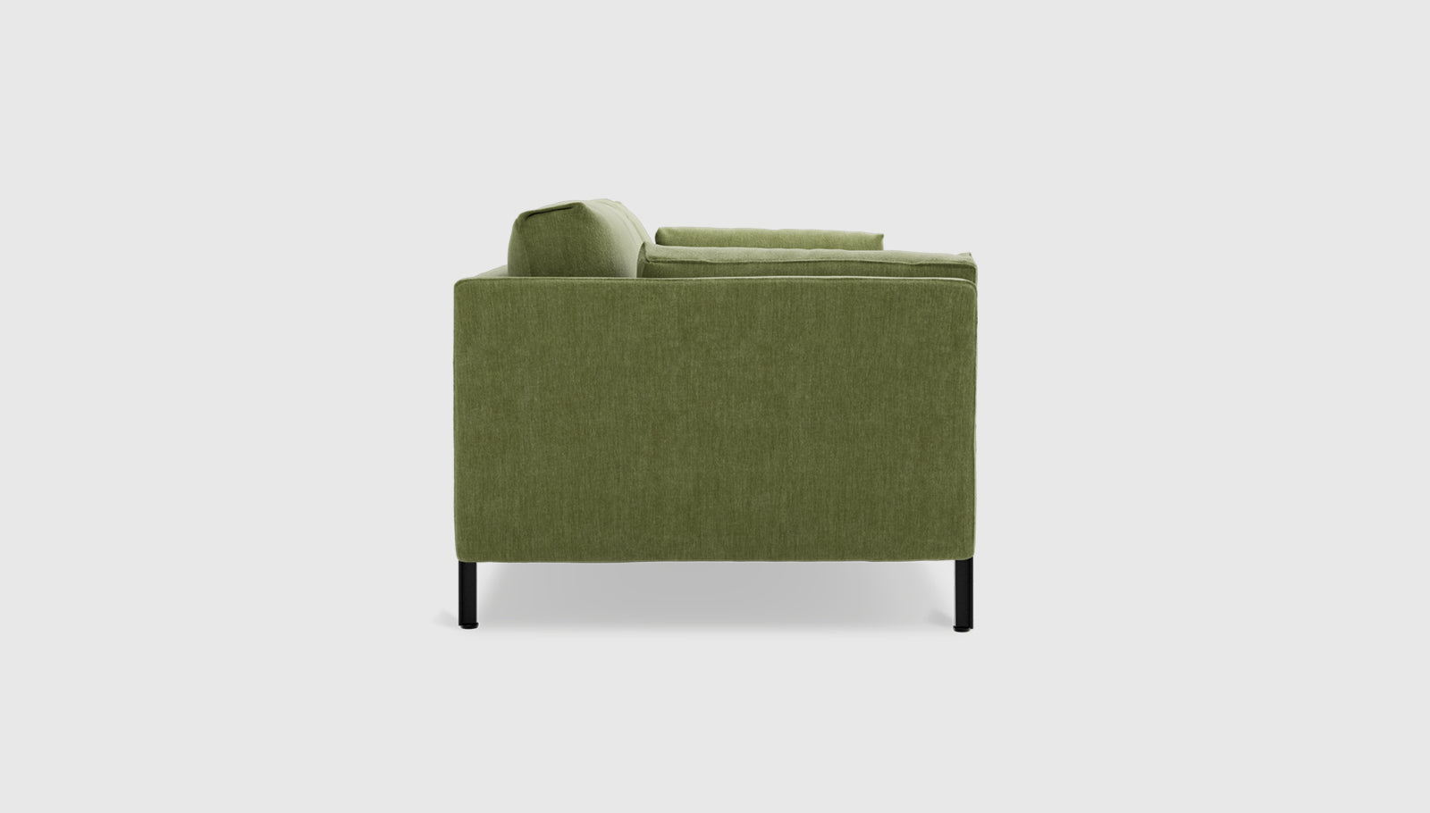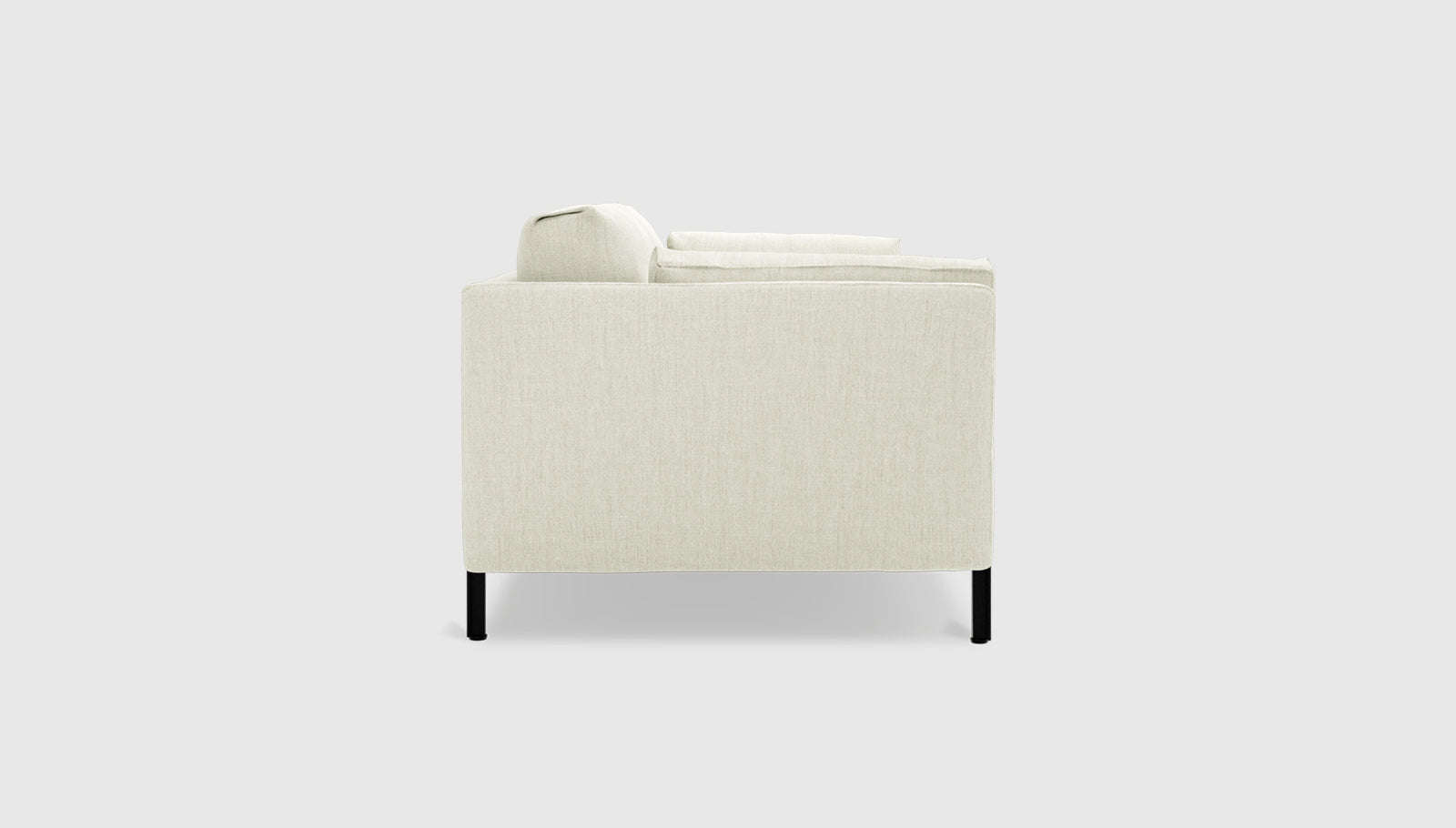 • Front face of the back and bolster cushions and the top edge of the seat cushions have no visible seams which adds to the minimal look.