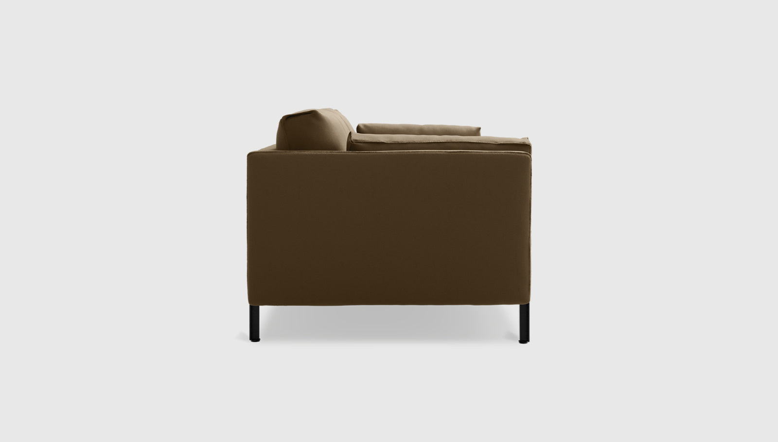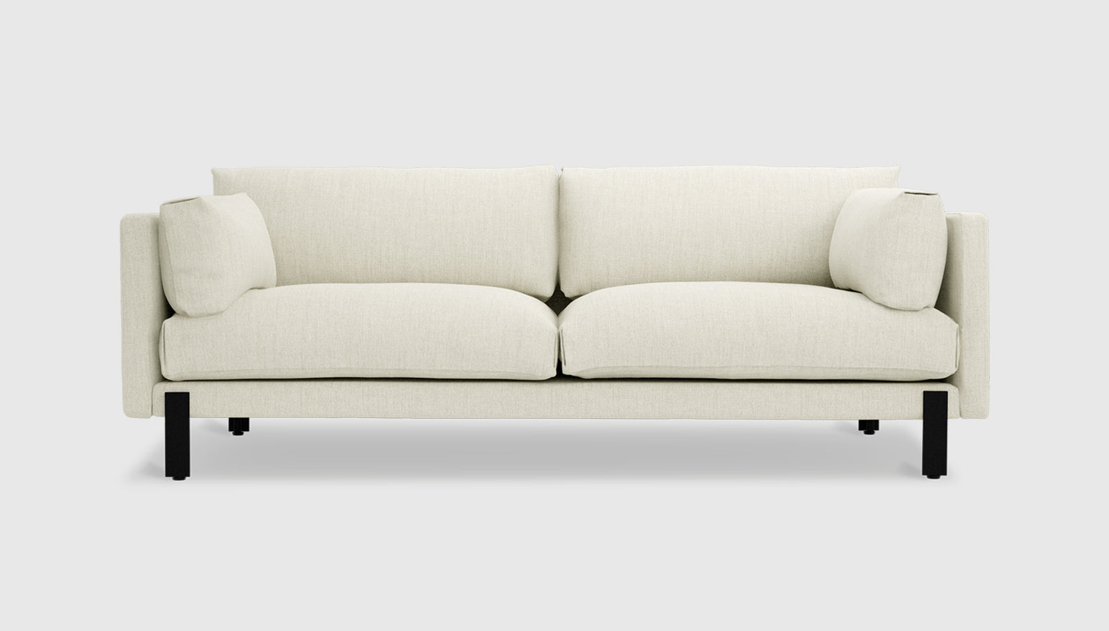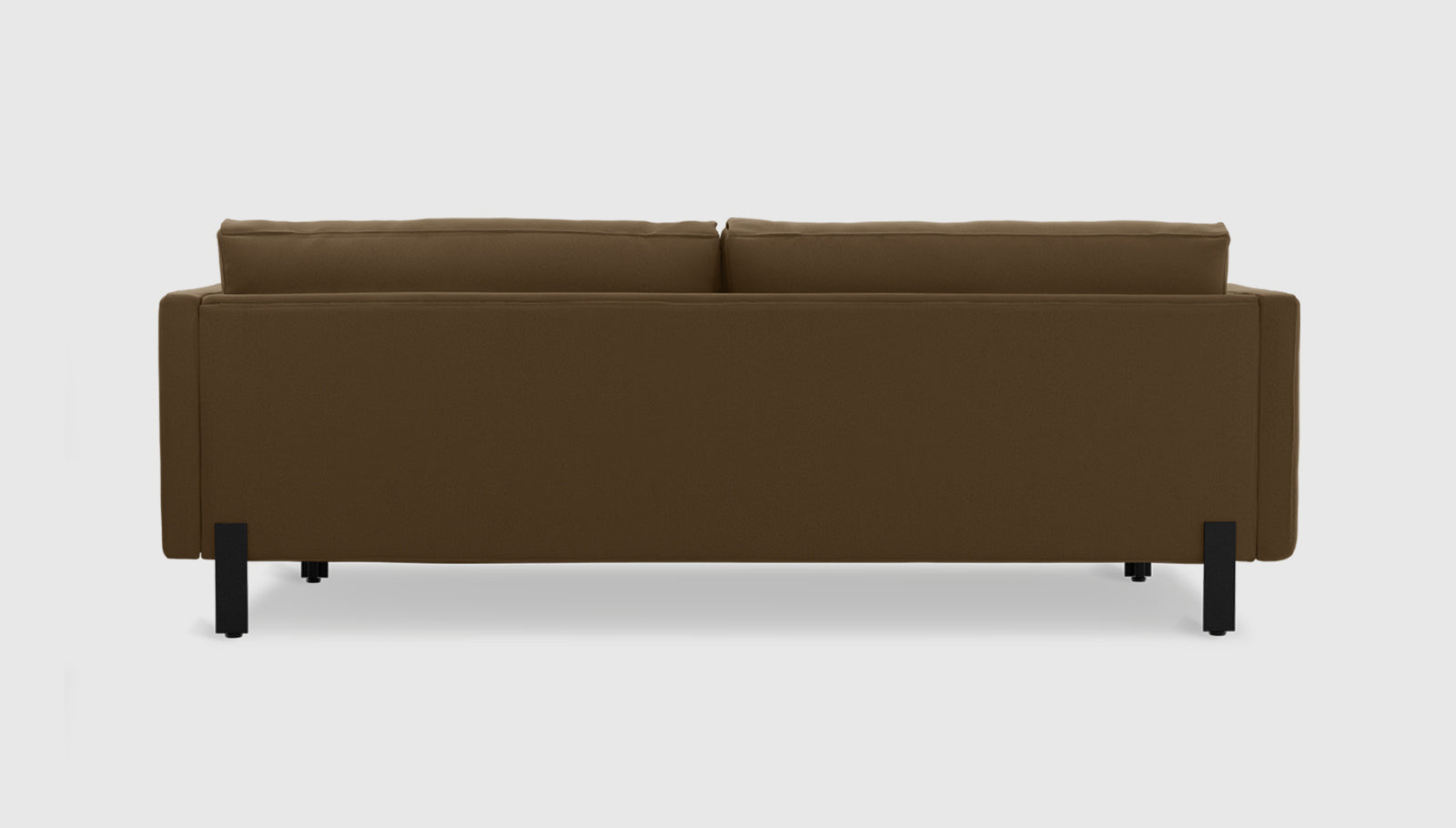 • Front face of the back and bolster cushions and the top edge of the seat cushions have no visible seams which adds to the minimal look.