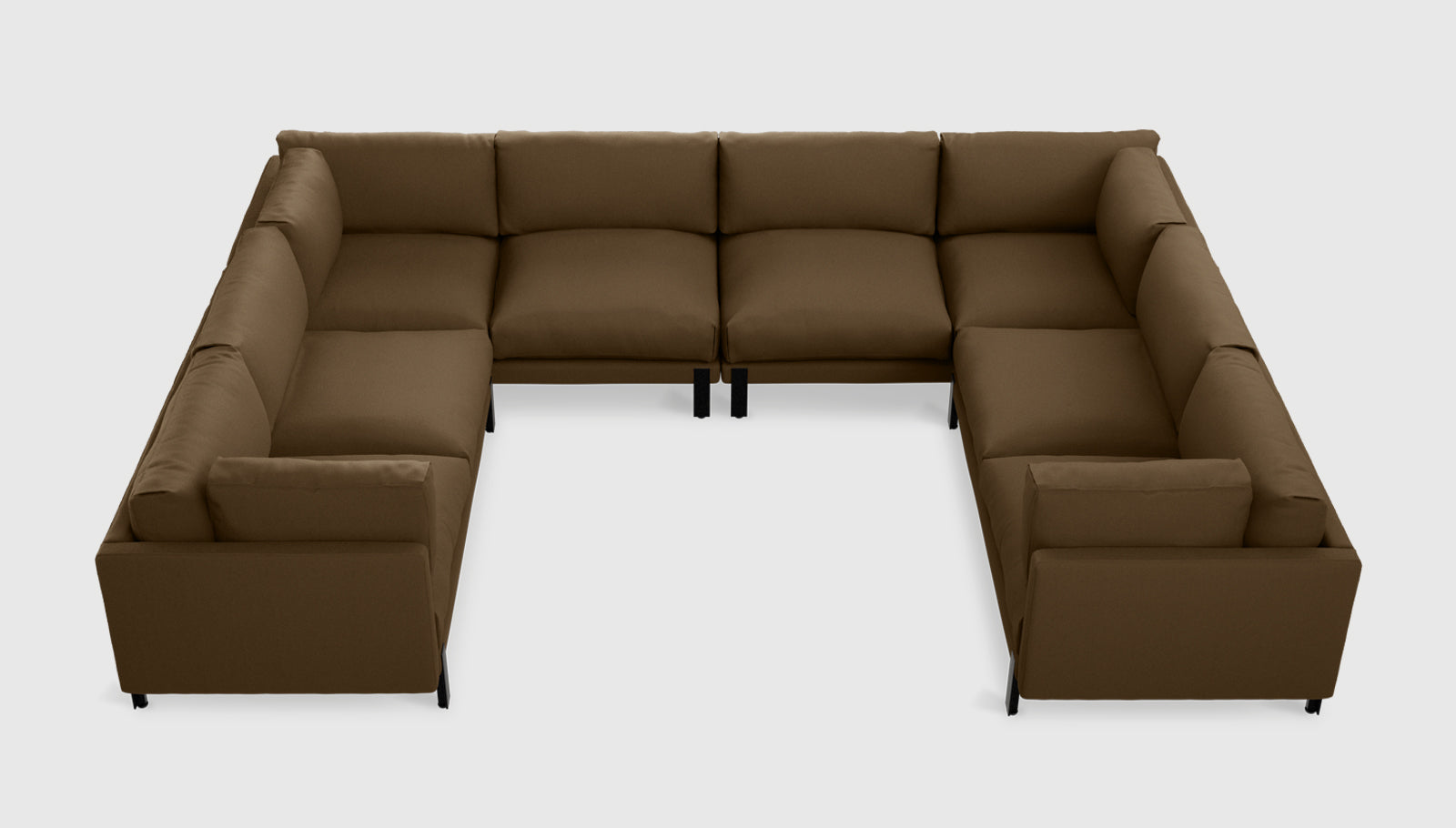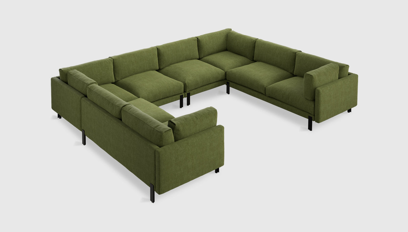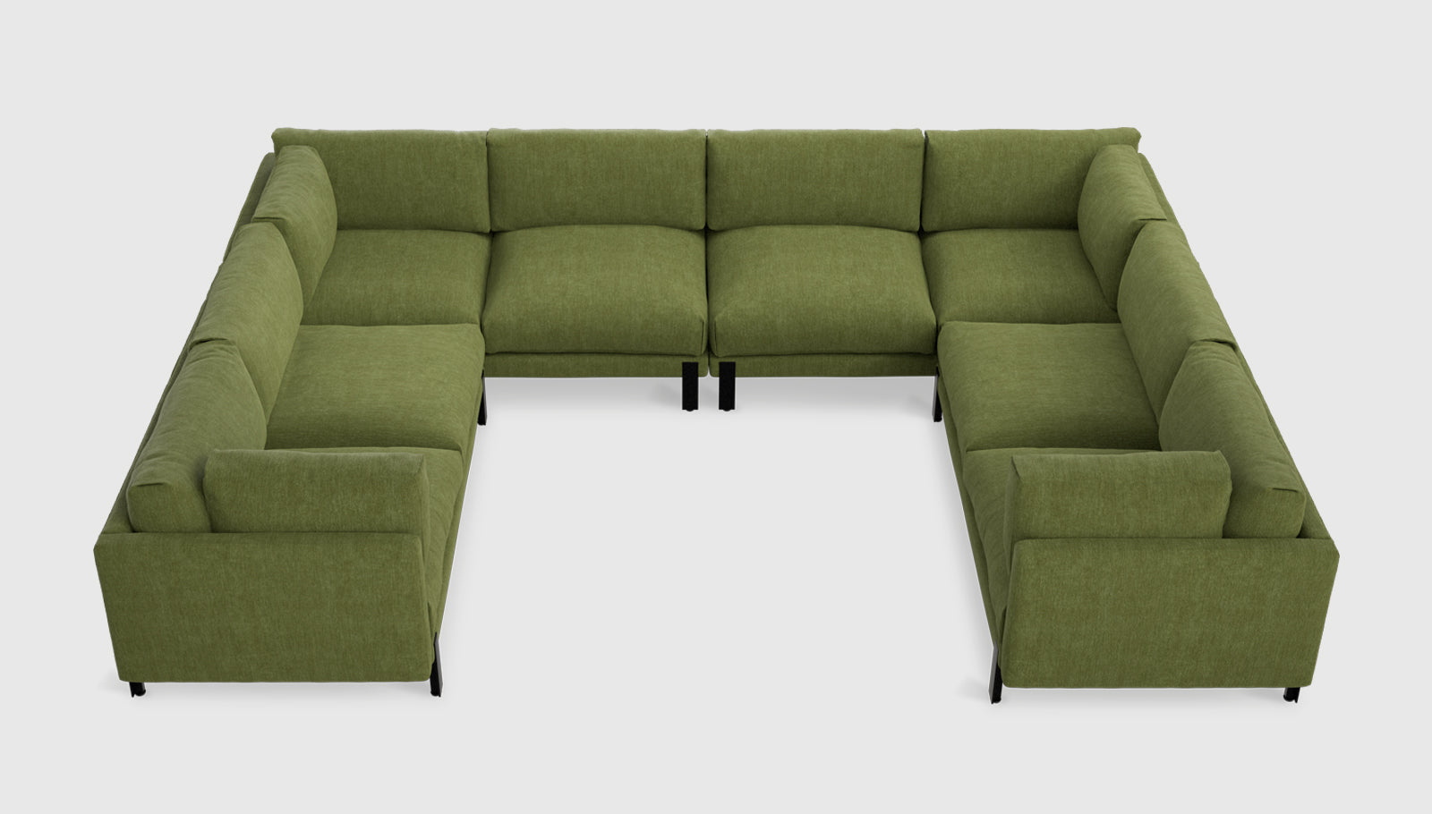 · The collection consists of five unique configurations: a stand-alone sofa, a long XL sofa, a right or left-facing sectional, a right or left-facing XL sectional and a U-shaped sectional.
