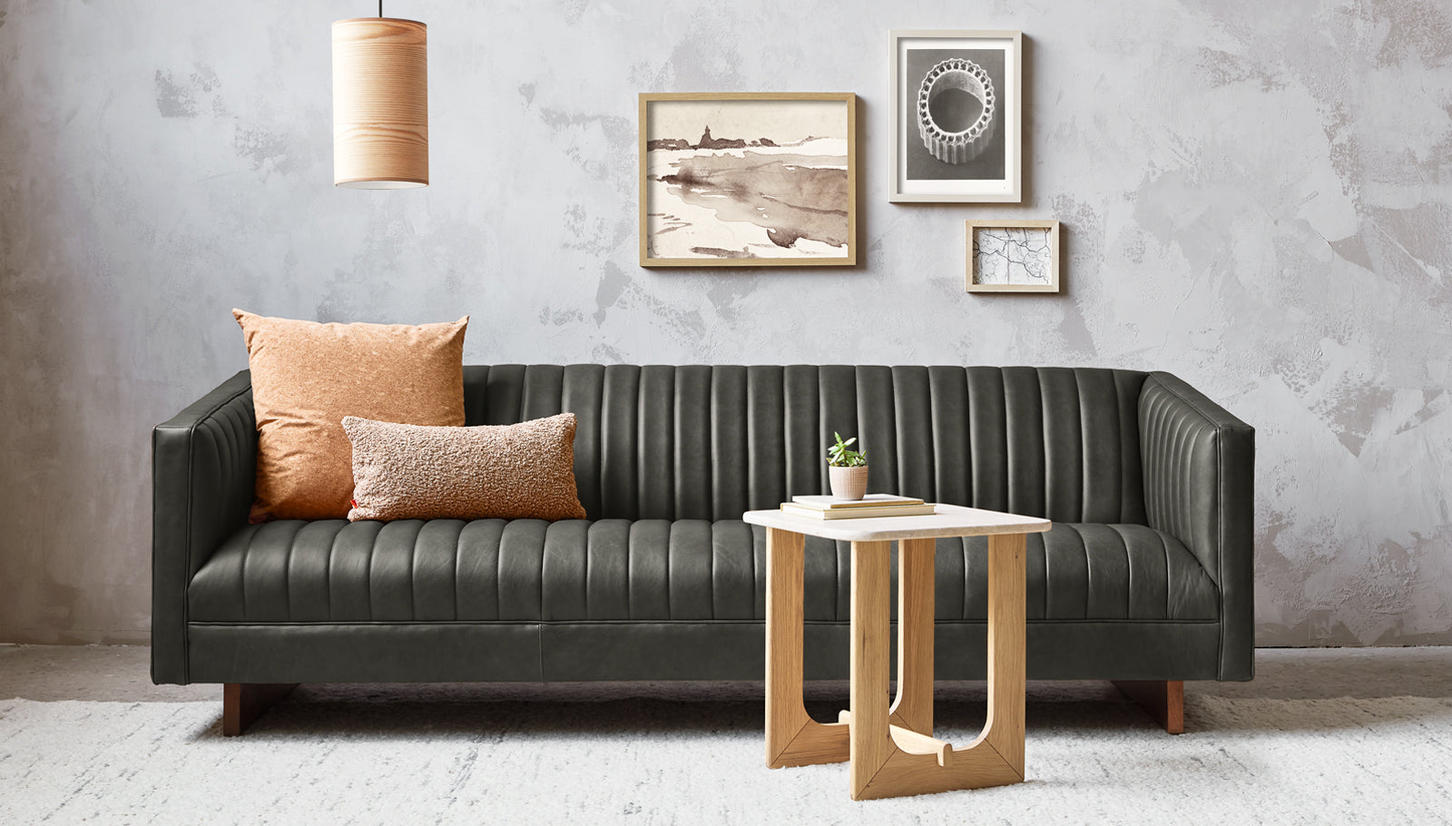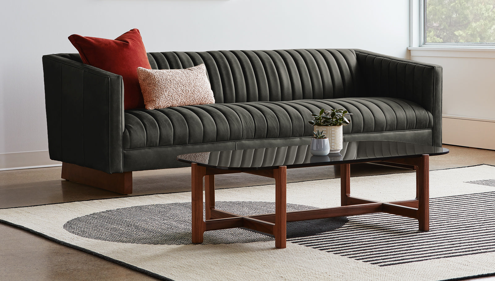 The Wallace Sofa is a modern reinterpretation of the classic English Chesterfield design. The channel-stitched leather upholstery on the seat, back, and arms creates a surface that is both visually striking and remarkably comfortable. Piping details, sloping armrests and an angular wooden base add sculptural, contemporary flair, while luxurious channeled padding make it perfect for lounging. Available in two Italian leathers, chosen for their unique grain characteristics that will age beautifully and develop a rich natural patina over time. Matches perfectly with the Wallace Chair. Our leather hides are carefully selected for their raw, natural surface characteristics which make each piece unique.