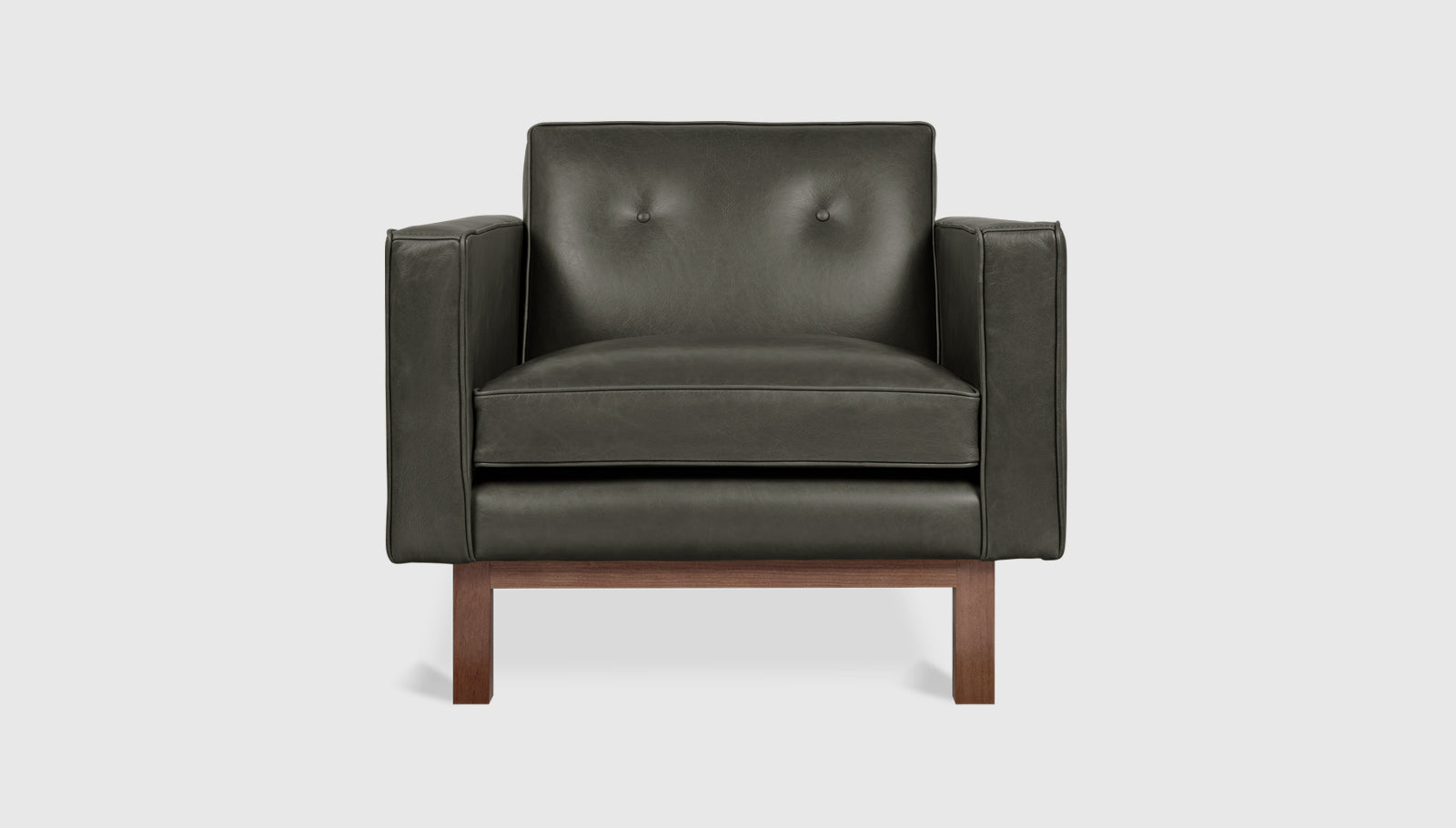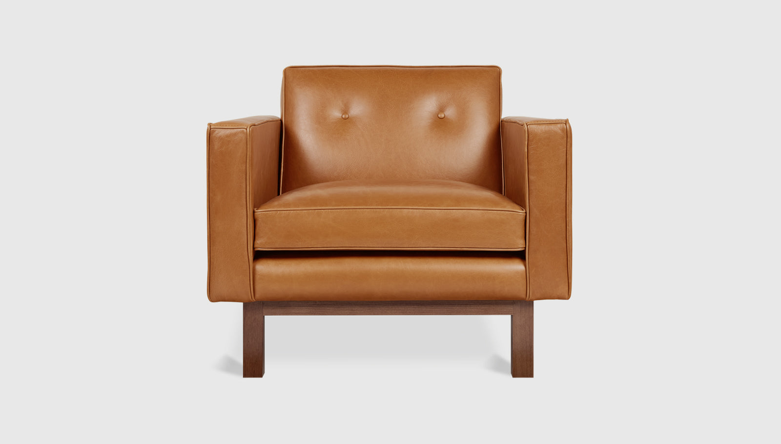 The Embassy Chair conveys a classic, mid-century style with tailored proportions and refined details. It features a button-tufted, tight back design with piping details throughout, and a seat cushion filled with luxurious synthetic-down. The frame is supported by a recessed, solid-wood base. Available in two classic leathers, chosen for their unique grain characteristics that will age beautifully and develop a rich, natural patina over time. Also available as a sofa. Our leather hides are carefully selected for their raw, natural surface characteristics which make each piece unique.