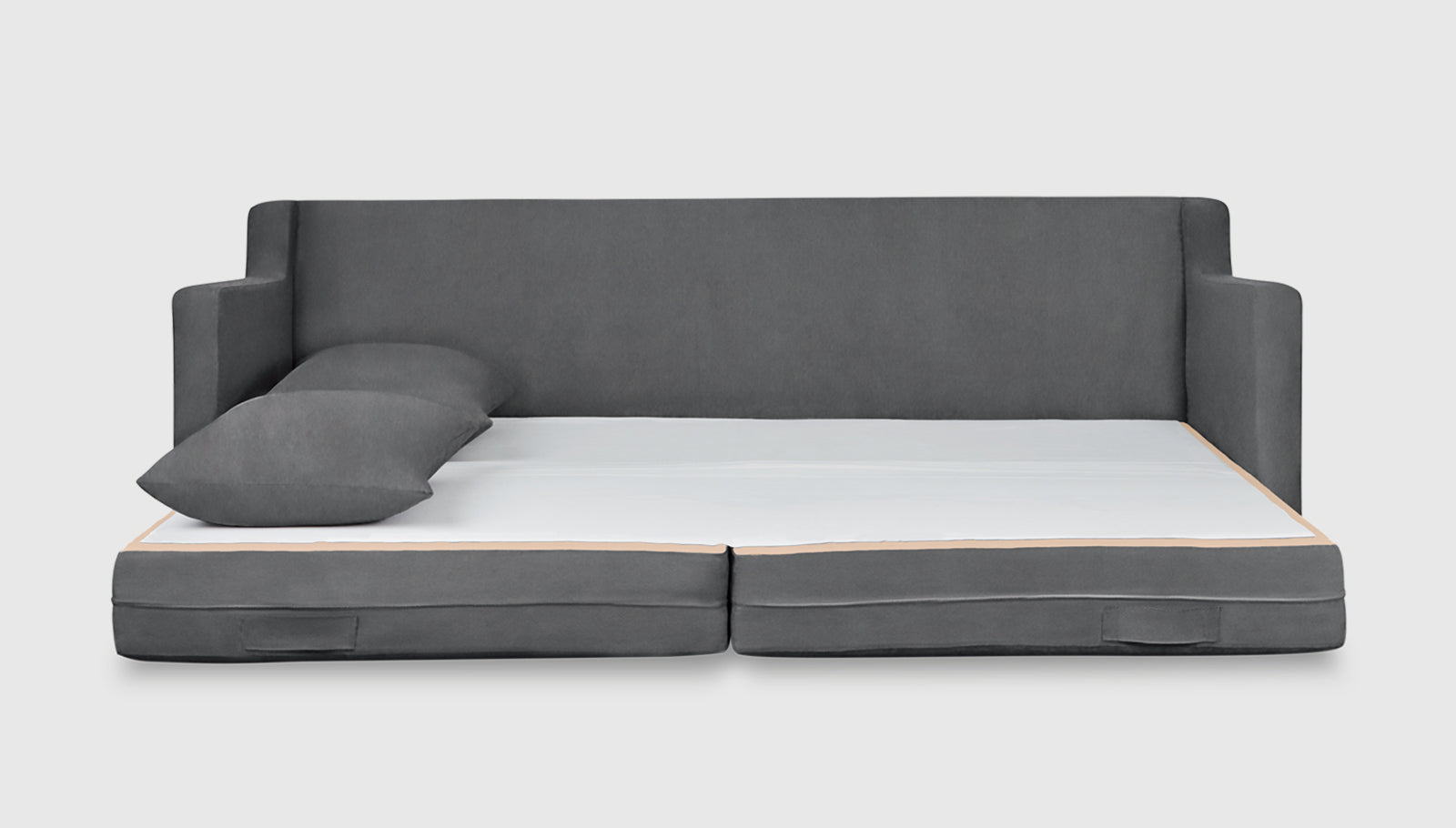 - Des poignées en tissu faciles à tirer sont cachées à l'intérieur du coussin de siège pour permettre une conversion simple entre le canapé et le lit.