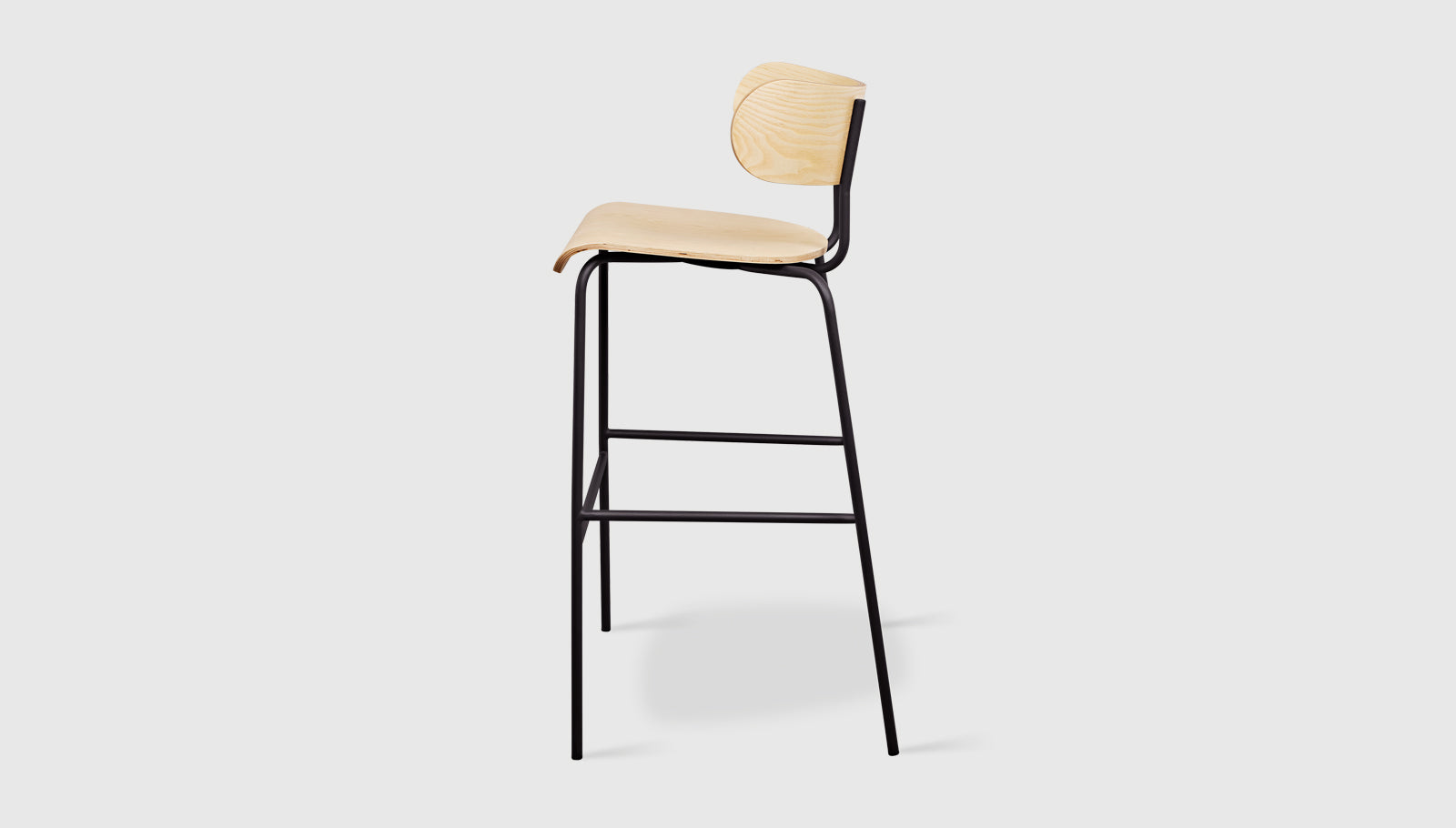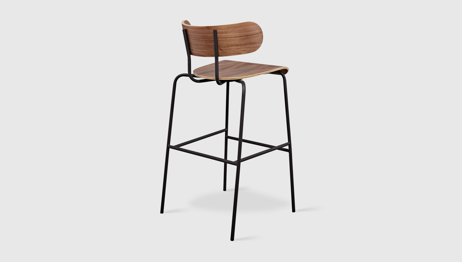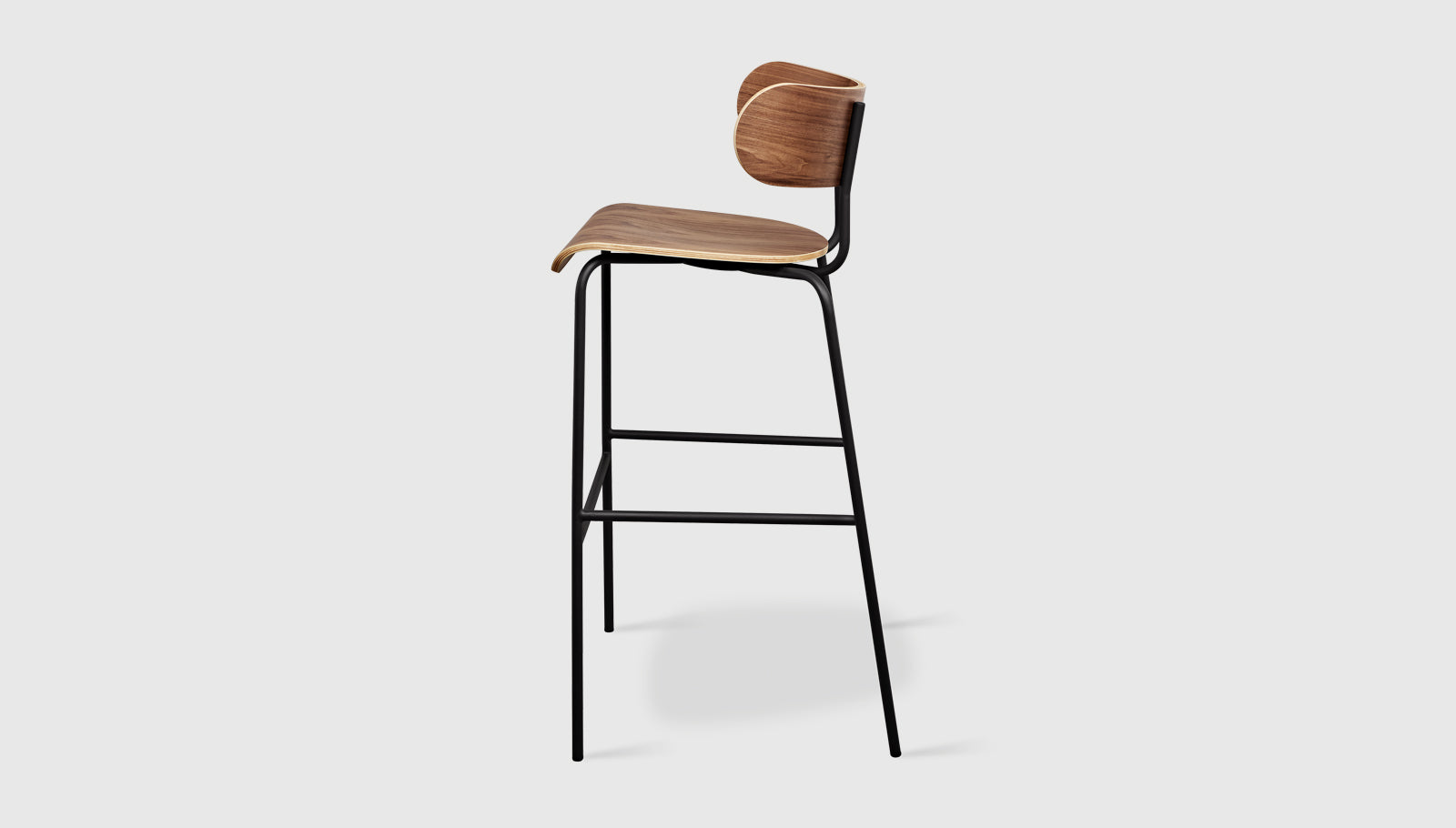 Blending a mid-century design approach with the ease of contemporary living, the Bantam Bar Stool embodies simple sophistication with a sculptural ethos that welcomes you to sit and stay awhile. Delicate steel legs support a formed-plywood seat and back that ergonomically support the body with gentle curves for all-day comfort. Sturdy, yet lightweight, this original design includes an integrated footrest for extra support. All you have to do is sit back and appreciate the craftsmanship and versatility of this modern marvel. An instant classic, Bantam is available in Blonde Ash, Black Ash and Walnut.