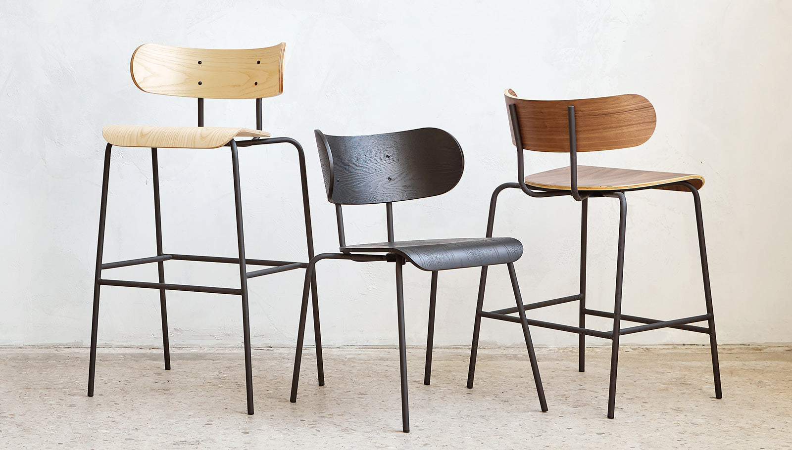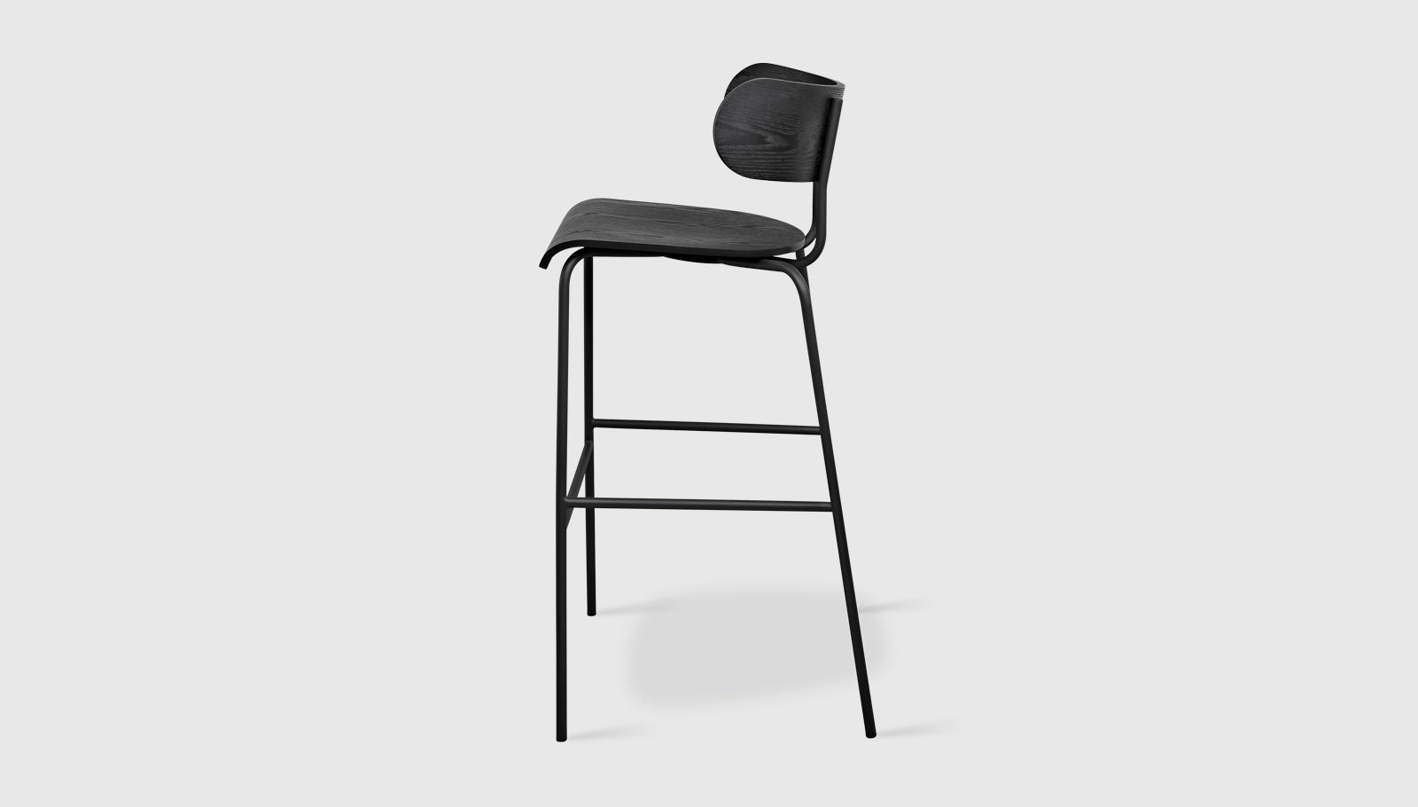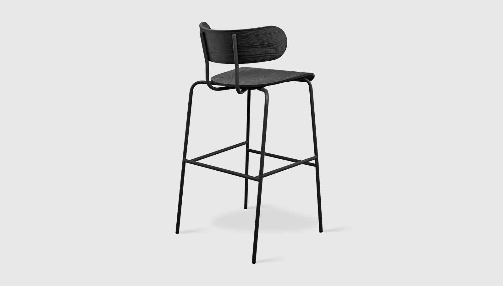 Blending a mid-century design approach with the ease of contemporary living, the Bantam Bar Stool embodies simple sophistication with a sculptural ethos that welcomes you to sit and stay awhile. Delicate steel legs support a formed-plywood seat and back that ergonomically support the body with gentle curves for all-day comfort. Sturdy, yet lightweight, this original design includes an integrated footrest for extra support. All you have to do is sit back and appreciate the craftsmanship and versatility of this modern marvel. An instant classic, Bantam is available in Blonde Ash, Black Ash and Walnut.